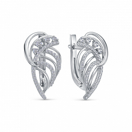 Серьги с фианитом родированные серебро 925*