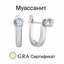 Серьги с муассанитом родированные серебро 925*