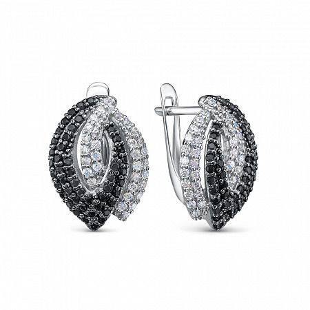 Серьги с фианитом родированные серебро 925*