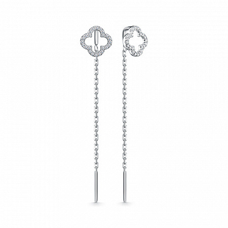 Серьги с фианитом родированные серебро 925*