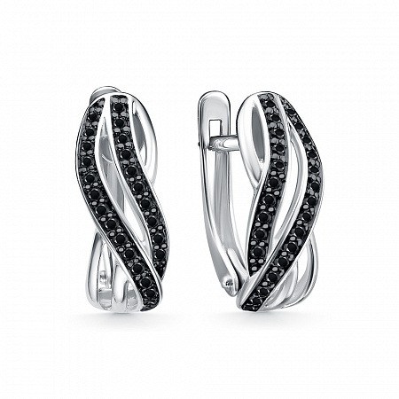 Серьги с фианитом родированные серебро 925*