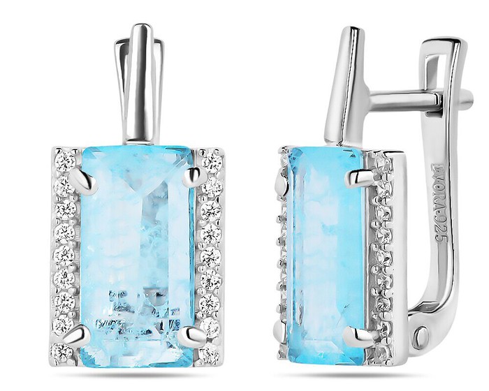 Серьги, арт.658643 Серебро Серебро 925, 4,15 гр., турмалин голубой выращ.