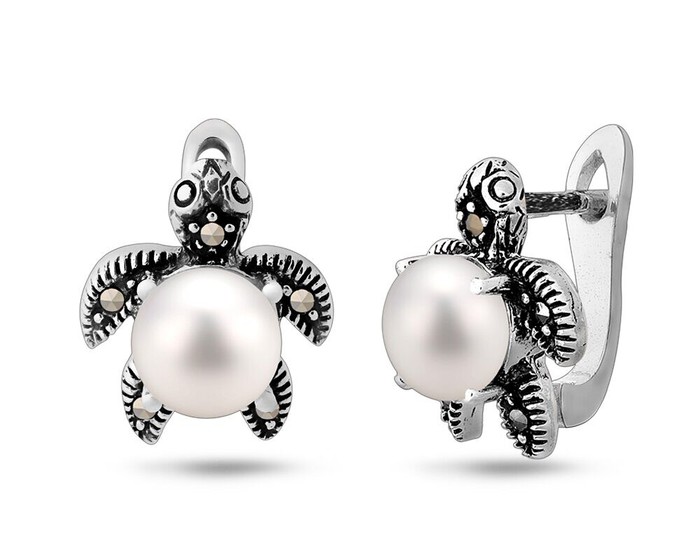 Серьги, арт.656437 Серебро Серебро 925, 5,05 гр., жемчуг , марказит