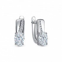 Серьги с фианитом родированные серебро 925*
