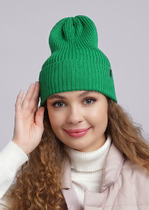 Стильная двойная шапка с отворотом в нежных пастельных цветах, без подклада, декорирована стильной нашивкой. Станет не только отличной защитой от холода, но и модным аксессуаром.