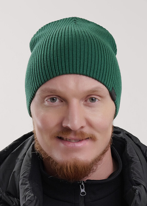 Базовая двойная шапка без отворота, выполнена ластичным переплетением. Декорирована нашивкой логотип.
