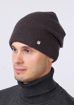 Мужская стильная шапка по голове. Смешанная вязка из качественной итальянской полушерсти, широкий практичный отворот с рельефным узором. Облегченная модель, мягкая и приятная при касании. Металлический логотип. Осень-зима - внутри утепленная подкладка из флиса.