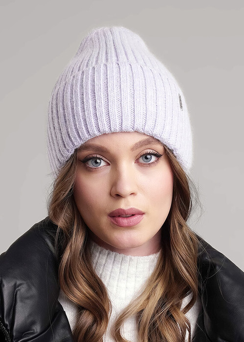 Женская шапка с отворотом выполнена из высококачественной пряжи с добавлением ангоры, декорирована стильной нашивкой. Утепление флисом по всей голове. Станет не только отличной защитой от холода, но и модным аксессуаром.