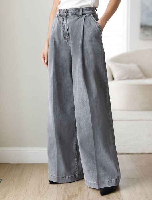 Состав: 82%Хлопок 13%ПЭ 5%ПУ Плотность: 10,3 OZСвободные широкие джинсы серого цвета с защипами из эластичного денима плотностью 10,3 OZ созданы для тех, кто ценит комфорт и стиль в повседневной жизни. При производстве джинсов применена технология «вареные швы», которая основана на локальном вымывании красителя из плотных участков ткани — сгибов и швов — за счет механического воздействия во время промышленной стирки. Стоун вошинг - энзимная стирка с камнями. Камни воздействуют на ткань, выбивая краску на швах, создавая контрастные мраморные потертости и мягкость. Модель отличается свободным кроем, который обеспечивает удобство движений и гармонично подчеркивает современный силуэт. Защипы добавляют изюминку и делают образ более интересным, а также визуально вытягивают силуэт. Благодаря использованию эластана материал сохраняет свою форму даже после длительной носки и многочисленных стирок.