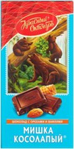 Любимая шоколадка «Мишка косолапый» теперь в формате плитки с миндалем и вафельной крошкой. Тонкая плитка ароматного темного шоколада, приправленного дроблеными вафлями и миндальной крошкой. Миндаль и вафли смягчают традиционную для темного шоколада горчинку, помогая шоколадному вкусу раскрыть свои самые сладкие оттенки во всей красе.