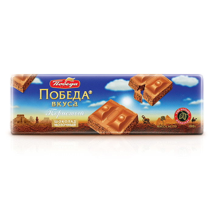 Нежности много не бывает! В коллекции молочного шоколада от «Победы» особое место занимает пористый молочный шоколад. Благодаря пористой структуре (когда шоколадная масса сперва взбивается, а затем охлаждается) в шоколаде остаются пузырьки и его нежная воздушная текстура буквально «тает во рту».