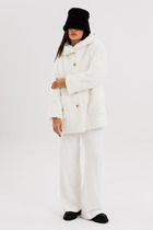 Пальто женское демисезонное, однобортное, прямого силуэта длиной ниже колена, на подкладке. Застежка на пришивные кнопки. Перед с функциональными карма-нами в рельефных швах. Рукав длинный, двухшовный. Пальто с капюшоном и съемным поясом