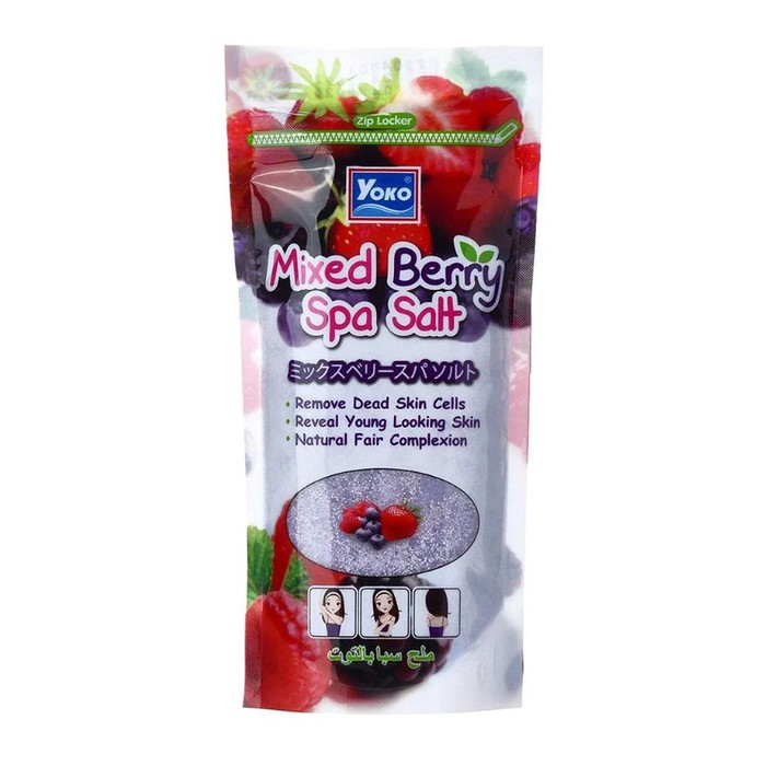 Солевой скраб для тела Yoko Mixed berry spa salt создан на основе морской соли и натуральных экстрактов всеми любимых ягод. Солевой скраб глубоко увлажняет и мягко отбеливает кожу тела, чувствительную кожу подмышек и зоны бикини, осветляет пигментные пятна. Обладает тонизирующим действием, способствует омоложению кожи. Соляная база скраба оживит кожу, сделает её мягкой, гладкой и эластичной. Кроме того, применение солевого скраба для тела Yoko Mixed berry препятствует формированию целлюлита в потенциальных проблемных участках. После 1 применения кожа более гладкая и увлажненная.Через 7-10 применений нормализуется гидро-липидная мантия, уменьшается размер пор, восстанавливается естественная защита. Кожа приобретает здоровый оттенок, гладкость и нежность.Основные свойства солевого спа-скраба для тела Ягодный микс YOKO Mixed Berry Spa Salt:• Глубоко очищает поры • Выводит токсины • Нормализует секреторную функцию сальных желез • Сужает поры, избавляет от черных точек • Увлажняет, восстанавливает водно-жировой баланс кожи • Избавляет от сухости и шелушения • Восстанавливает защитные функции эпидермиса • Придает ровный оттенок, эластичность и нежность