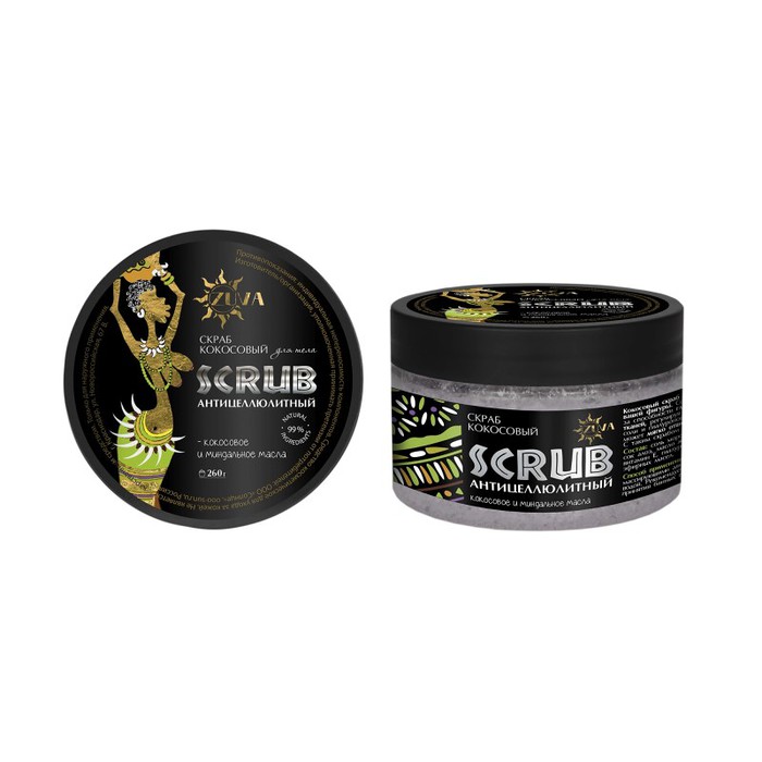 Кокосовый скраб для тела «Zuva» прекрасно подходит для коррекции вашей фигуры. Сочетание миндального масла и сока алоэ ценится за способности глубоко увлажнять кожу, повышать тонус и эластичность тканей, регулируя процесс клеточного обновления. Комплекс морской соли и гиалуроновой кислоты в составе является отличным пилингом, может мягко отшелушивать и оказывать антицеллюлитное воздействие.