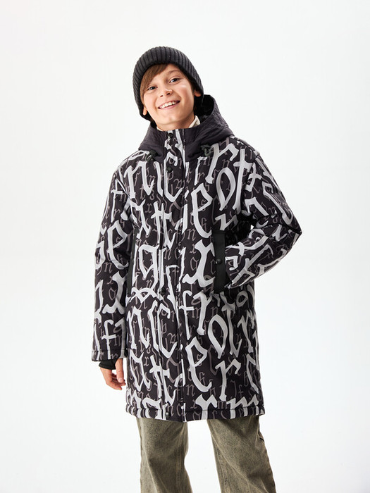 Куртка прямого силуэта в черно-белой трендовой расцветке с водонепроницаемым покрытием. Утеплитель синтепон пластовой 200 гр/м2.  Манжет из ткани "Soft Stretch"прочная внешняя поверхность и мягкий внутренний слой с велюровым ворсом. Температурный режим до минус 15 градусов. Изделие дополнено съемным объемным капюшоном и боковыми карманами, которые защитят от ветра и дождя в любую погоду. Застежка - на молнию закрыта ветрозащитной планкой на кнопках. Воротник - стойка, переходящая в капюшон. Доступна в 2 цветах.