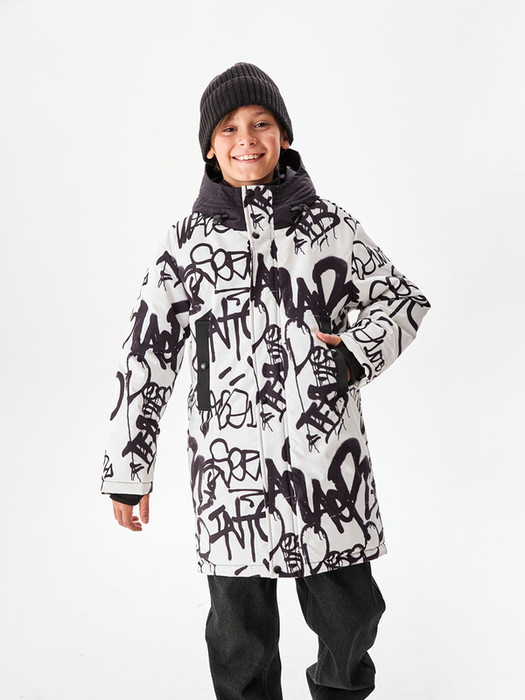 Куртка прямого силуэта в черно-белой трендовой расцветке с водонепроницаемым покрытием. Утеплитель синтепон пластовой 200 гр/м2. Манжет из ткани "Soft Stretch"прочная внешняя поверхность и мягкий внутренний слой с велюровым ворсом. Температурный режим до минус 15 градусов. Изделие дополнено съемным объемным капюшоном и боковыми карманами, которые защитят от ветра и дождя в любую погоду. Застежка - на молнию закрыта ветрозащитной планкой на кнопках. Воротник - стойка, переходящая в капюшон. Доступна в 2 цветах.