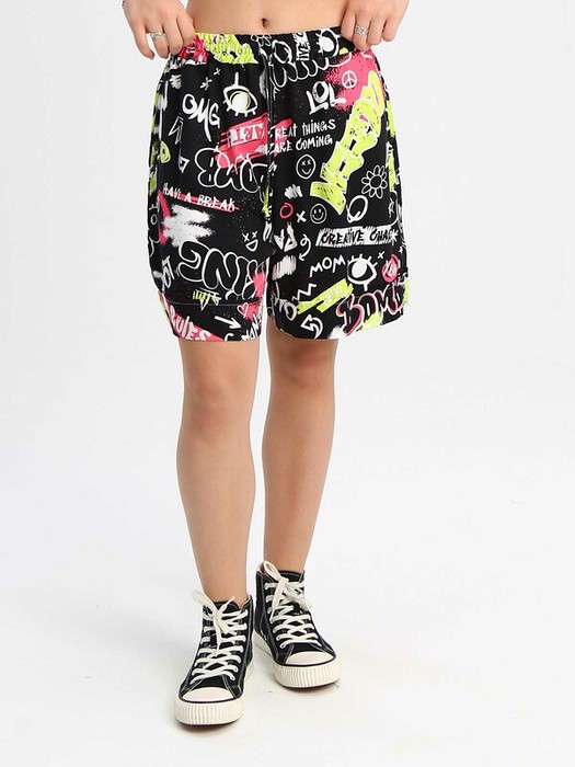 Стильные шорты для девочки с высокой талией — тренд летнего сезона. Изготовлены из вискозы, невероятно мягкий и приятный материал для теплых летних дней. Мягкая резинка на поясе не давит на живот и делает шорты очень комфортными для повседневной носки.Модная расцветка "граффити" отлично подойдет к любому базовому верху.