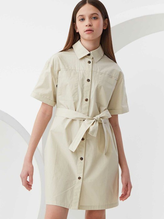 Платье-рубашка в стиле сафари из 100% хлопка. Модель свободного силуэта длиной выше колена. Короткий широкий рукав, два накладных кармана на передней части и удобные боковые карманы в швах – продуманные детали делают платье стильным и комфортным. В комплекте с платьем – пояс, позволяющий создать акцент на талии. Модель застегивается на роговые пуговицы по всей длине. Размерный ряд 128 – 176 см.