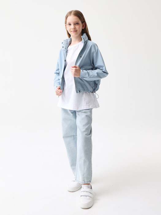 Легкая ветровка в спортивном стиле с капюшоном. Фактурная нейлоновая ткань с влагоотталкивающей пропиткой. Свободный крой с длинными рукавами реглан. Воротник-стойка, прорезные карманы и застежка-молния, сверху планка с кнопками. Манжеты на кнопке и подол на резинке для лучшего прилегания и предотвращения поддувания. Представлена в трех цветах – меловой, пыльно-голубой, пыльная роза. Рекомендованный температурный режим: +15/+20. Размерный ряд 128 – 176 см.