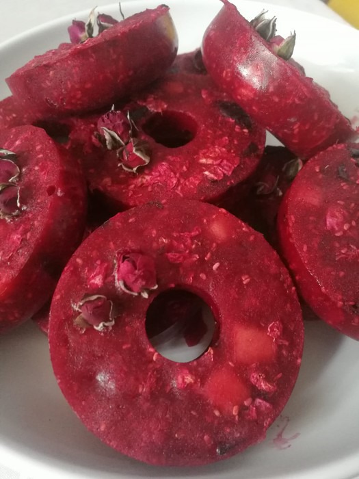Смесь для напитков/чая замороженная в брикетах Малина-персик с базиликом и розой.