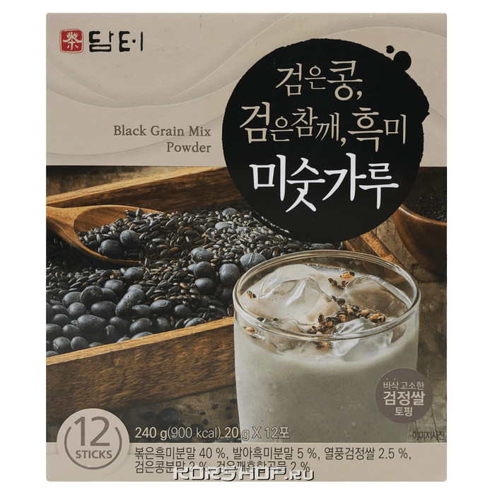 Смесь для чая из черного зерна и черных бобов от торговой марки Damtuh – это отличный источник витаминов и энергии. Чашка такого напитка, разведенного молоком, заменяет полноценный прием пищи и полезна для здоровья, молодости и долголетия. Это отличное решение для тех, кто хочет сэкономить время и сохранить высокую продуктивность. Купить смесь для чая из черного зерна и черных бобов Damtuh с доставкой на дом по Москве и Подмосковью можно в интернет-магазине KorShop.ru. Культурной традицией у корейцев является употребление полезных натуральных напитков. Основные ингредиенты этой каши-напитка "черного Мисуткару" - черные бобы, чёрный кунжут и зерна чёрного риса содержат темные пигменты антоцианы, сезамин, что является профилактикой онкологии, нормализации гормонального фона, уровня холестерина, сахара, обмена веществ и др. Продукт содержит сливки растительные, молоко, сахар, декстрин и др.