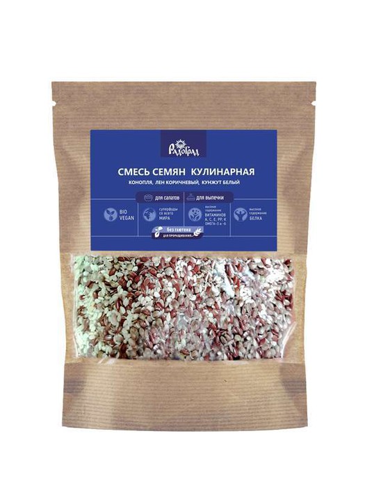 Состав: семена льна коричневые, кунжута белые, семена конопли.