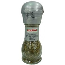 Приправа Французские травы от Kotanyi в мельнице с розмарином, тимьяном, куркумой, морской солью и другими пряностями. Воссоздайте истинный вкус прованской кухни. Приправа Французские травы придаст потрясающий аромат рыбным и мясным блюдам, а также блюдам на гриле, растительному маслу, травяным уксусам и маринадам. С такой удобной мельницей вы сможете по достоинству оценить все преимущества приправы. Пластиковый механизм на крышечке имеет две степени помола. Чтобы выбрать крупный, переверните мельницу и опустите механизм до щелчка. Чтобы использовать мелкий помол, поднимите механизм по стрелочкам. Подходит для сервировки стола.