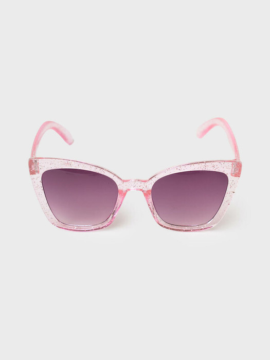 Солнцезащитные очки с прозрачной оправой с блестками для маленьких модниц. Солнцезащитные очки с фильтром Cat3. Затемненные линзы имеют защиту UV400, которая отражает 100% ультрафиолетовых лучей с длиной волны менее 400 нанометров, эффективно блокируя все ультрафиолетовые лучи при солнечном свете. Гибкая, устойчивая к ударам, оправа создана для того, чтобы дети могли активно играть, не беспокойтесь о случайных падениях очков. Небьющиеся акриловые линзы. Ширина оправы - 130 мм, длина дужек - 137 мм. Обхват головы 50-52 см. Такие очки эффективны для защиты глаз в тропиках, у моря и в горах. В комплекте текстильный чехол из микрофибры и им можно легко ухаживать за изделием. Очки транспортируются в картонной коробке.