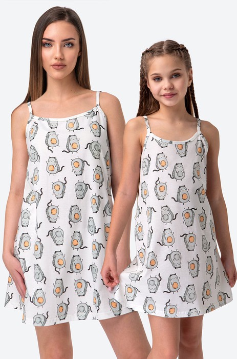 Детская сорочка для девочек и девочек-подростков выполнена из натурального 100% хлопка. Аккуратные тонкие бретели, удобный А-силуэт и длина выше колена – каждая деталь создана для комфорта ребенка. Сорочка для детей представлена в нежном молочном цвете и украшена принтом авокадо.