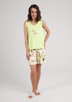 Сорочка из кулирки. Низ и рукава с отделкой рюшами, в горловину вдета узкая лента, дизайн в виде растительных мотивов. Длина чуть ниже середины бедра. Размеры от 44 до 54. Есть возможность заказать данный товар по розничной цене.