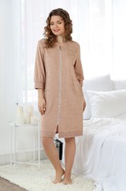 Хлопчатобумажная сорочка А-силуэта выполнена из трикотажа с интересным рисунком в виде бабочек. Модель дополнена нежным эластичным кружевом спереди по горловине и сзади на бретелях, напоминающих порхающие крылышки бабочек. Низ изделия обработан спиралевидным швом на краеобметочной машине. Все это делает сорочку легкой, нежной, изящной и создает целостный образ летящей бабочки.