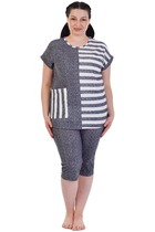 Сорочка из набивной кулирки. Вставки из кружева, два бантика на груди, дизайн в виде узора в крапинку, внизу два разреза по бокам, украшены бантиками. Длина чуть ниже середины бедра. Две расцветки — розовая и черная. Размеры от 42 до 52. Есть розница.