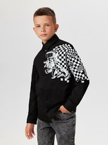 Сорочка приталенного силуэта для мальчика с белой супатной застежкой