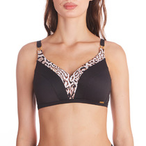 Слитный купальник с формованными чашками на каркасах в ярком тропическом принте. Плавная линия зоны декольте эффектно подчеркyта декоративной паттой, а глубокий вырез на спинке фиксируется застежкой. Комфортные бретели с возможностью регулировки. Модель выполнена в контрастном сочетании полочки и однотонной спинки.