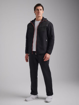Мужской спортивный костюм из плотного трикотажа с изнаночным начесом. Верх комплекта - толстовка-худи с капюшоном, с накладным карманом "кенгуру". Рукава толстовки втачные, свободные со спущенной линией плеча, с эластичными манжетами. Брюки "Карго" с объемными накладными карманами, с клапанами, имеют два дополнительных кармана с молниями в боковых рельефах. Брюки к низу заужены на резинку. Пояс брюк эластичный, по линии талии дополнительно регулируется шнуром.