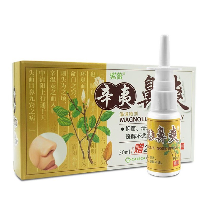 Xin Yi Bi Shuang — натуральный спрей для носа на основе компонентов растительного происхождения. Обладает выраженными антибактериальными, противовирусными, регенерирующими, тонизирующими и увлажняющими свойствами. Спрей для носа «Магнолия» способствует сужению сосудов, останавливает кровотечения, уничтожает вредоносные микроорганизмы, которые активно размножаются на слизистой оболочке носовых проходов.Средство Xin Yi Bi Shuang поможет быстрее справиться с респираторными, простудными и вирусными заболеваниями, облегчит носовое дыхание, ускорит лечение насморка любого происхождения., В подарок идет 2 пластыря для носа. Они специально разработаны для расширения носовых ходов, что обеспечивает мгновенное облегчение при насморке и отеках. Незаменимы для людей, страдающих от храпа., Показания к применению:, Способ применения спрея: Делайте по 1-2 впрыскивания в носовую полость 3-4 раза в день или по мере необходимости., Способ применения пластырей: Тщательно промыть и высушить кожу носа. Снять защитную пленку и зафиксировать пластырь на центральной перегородке носа, подождать несколько секунд чтобы он прилег к коже. Носить не более 12 часов., Противопоказания: Индивидуальная непереносимость компонентов, беременность, период лактации, детский возраст., Состав: экстракт Магнолии, Сапожниковия, экстракт Дудника Даурского, Гуттуиния, Копытень Зибольда, Вайда красильная, Мята перечная, Хлоргексидина ацетат 0,05-0,10%.