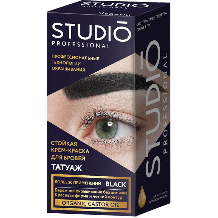 Совместные покупки Симферополь Косметика и парфюмерия Средства для бровей — STUDIO Краска д/бровей и ресниц Экстра-черный с эфф.татуажа, 30/20мл (50649 )
