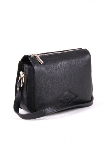 Сумка женская кросс-боди из натуральной кожи с отделкой из натуральной замши. Три отдела, закрывающиеся на общую молнию. На передней стенке - декоративная вставка с тиснением. Несъёмная регулируемая ручка.