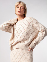 Vilatte Укороченный джемпер узорной вязки из 100% хлопка D39.629 бежевый меланж