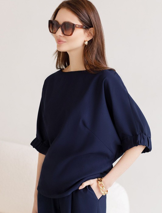 Состав: 76%Лиоцелл (Вис) 24%ПЭСвободная блузка темно-синего цвета выполнена из плотного лиоцелла. Лиоцелл это более дорогой и экологичный вариант вискозы, очень прочный и шелковистый. Современная интерпретация кроя «летучая мышь» дополнена акцентными эластичными манжетами. Эта блузка идеальна для любого типа фигуры, в том числе и на королевские размеры. Этот крой создан для того, чтобы мягко скрыть лишние объемы. Эта повседневная блузка с вырезом лодочка создана для легкого и утонченного стиля. Мягкие линии кроя создают невероятно эффектный образ, который подчеркивает естественную красоту, не стесняя движений, а свободный фасон дарит ощущение абсолютного комфорта и уверенности. Блузка красиво драпируется при движении, создавая летящий, воздушный эффект.