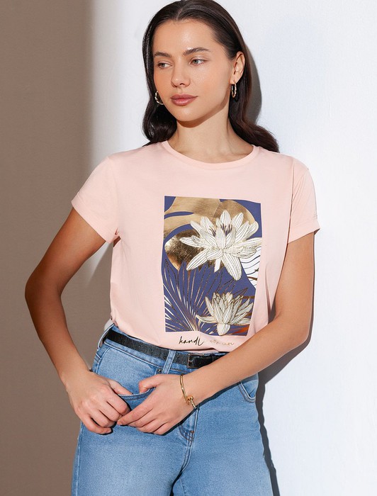 Состав: 92%Хлопок 8%ПУ Плотность: 170 Г/м2Модная футболка пудрового цвета привлекает внимание своим интересным дизайном и ярким принтом. Благодаря прямому крою изделие комфортно садится на любую фигуру, в том числе на большие размеры, и не сковывает движений. Круглый вырез подчеркивает современный стиль, а натуральный материал из хлопка с добавлением эластана обеспечивает удобство в повседневной носке и приятные тактильные ощущения. Прочность и износостойкая структура сохраняет первоначальную форму футболки после множества стирок. Рукава имеют аккуратные подгибы, что придает изделию завершенность и помогает сохранять аккуратный внешний вид. Принт в виде цветов и надписи нанесен красками с устойчивым покрытием, перевод надписи: Handle with care - Обращаться с осторожностью. Стильная футболка гармонично вписывается в любой гардероб и подойдет для прогулок, отдыха дома или неформальных встреч. Благодаря особенностям кроя модель хорошо сидит, скрывая недостатки и подчеркивая достоинства. Удобная футболка идеально сочетается с базовыми вещами, позволяя создавать новые интересные образы каждый день.