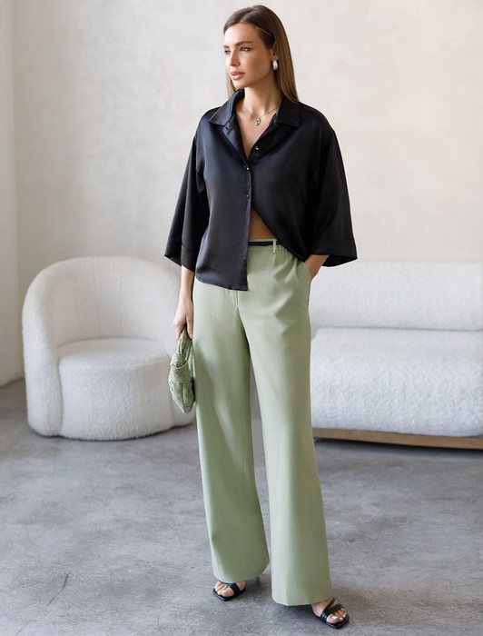— Свободные брюки с поясом на резинке из плотного лиоцелла