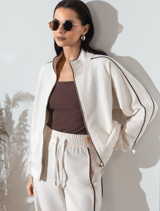 Совместные покупки Симферополь Женская одежда Футболки — Свободный бомбер с лампасами на молнии из петельчатого футера двухнитки с эласта