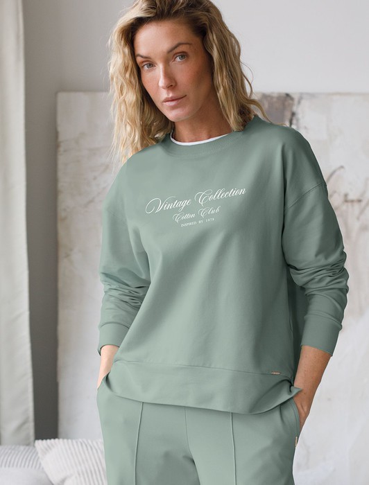 Свободный свитшот с принтом и разрезами из эластичного футера двухнитки без наче