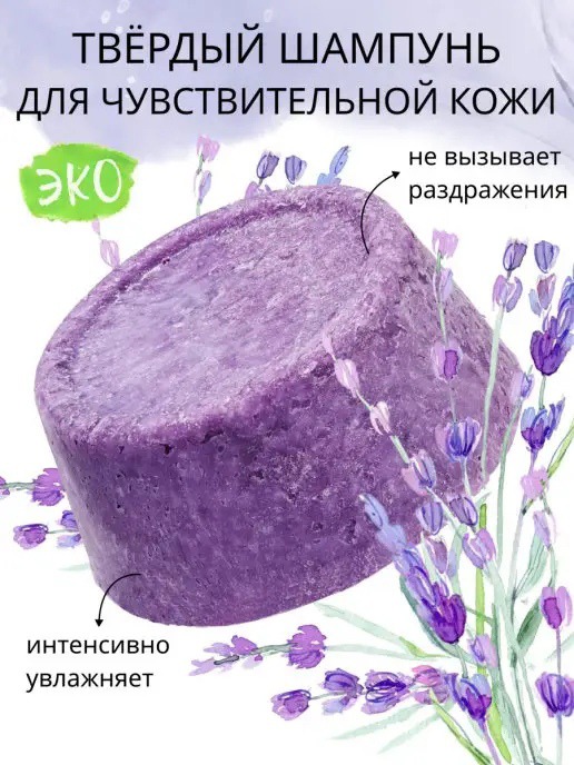 Твердый натуральный шампунь Лаванда, интенсивное увлажнение и блеск, для всех типов волос и чувствительной кожи головы. Мягкий шампунь для чувствительной кожи головы с маслом лаванды содержит большое количество защитных и увлажняющих ингредиентов.