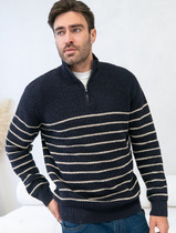 Vilatte Свитер фактурной крупной вязки с металлической молнией U39.009 темно-син