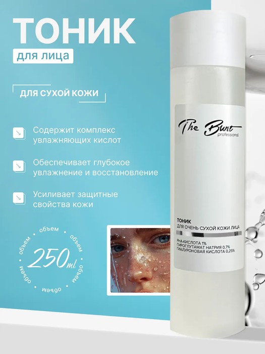 Тоник для очень сухой кожи лица на основе комплекса увлажняющих кислот, обеспечивает глубокое увлажнение и восстановление барьерных функций эпидермиса, подготавливает к последующему нанесению уходовых средств.