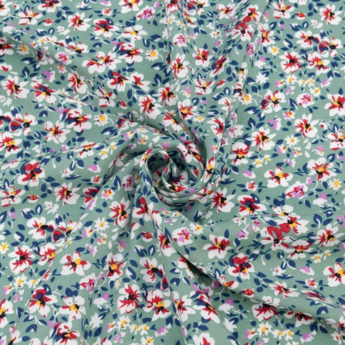 Ткань на отрез штапель 150 см 2306-1 Цветы на мятном