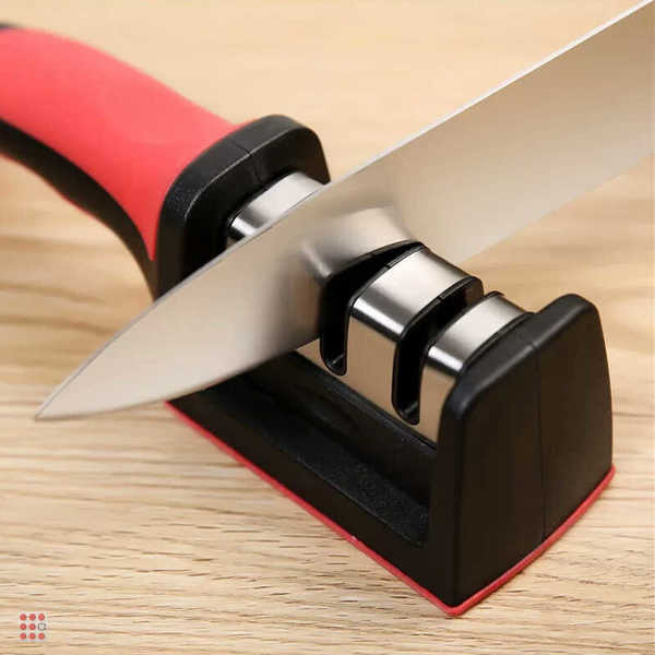 Восстановление остроты ножа зависит от силы нажатия и правильного обращения с точилкой.Точилка для ножей имеет 3 этапа: