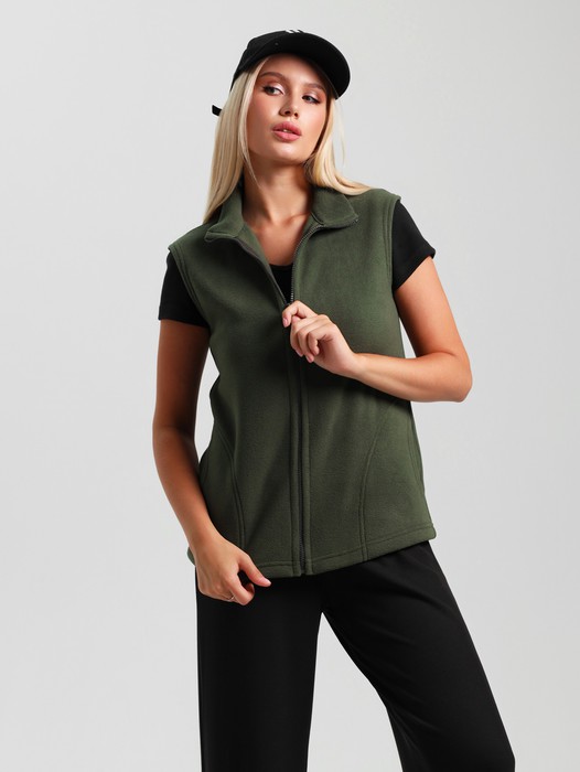 Жилет молодежный из трикотажного полотна «флис», полуприлегающего силуэта, воротником «стойка», карманами в боковых швах фигурной формы, центральной бортовой застежкой на тесьму «молния».